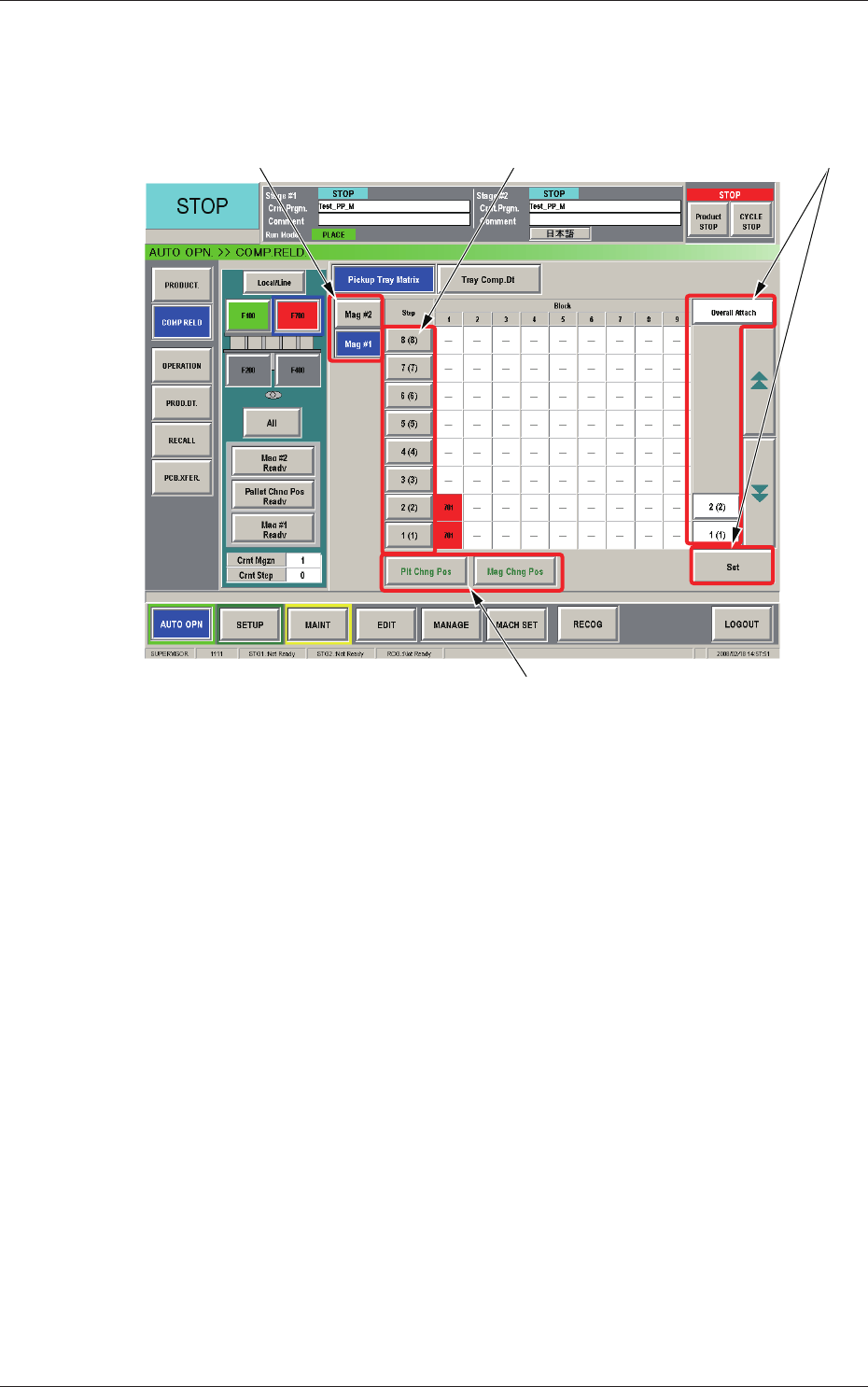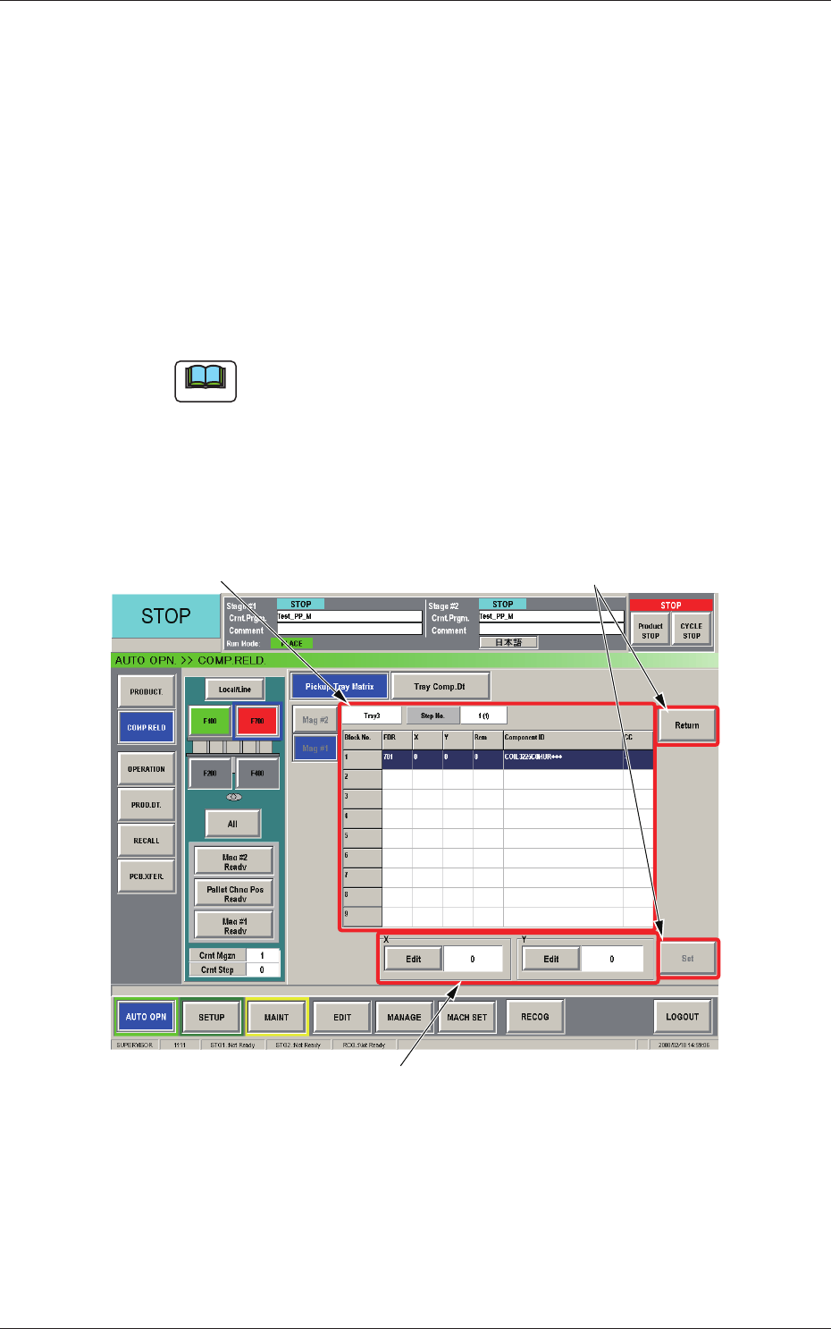 2-6 AIX-ML T-ID [3] Component Reload Buttons When the component-reloaded step is selected and the [Set] button is pressed, the tray pickup matrix of the selected step is set to "(1, 1)" and the number of remain…