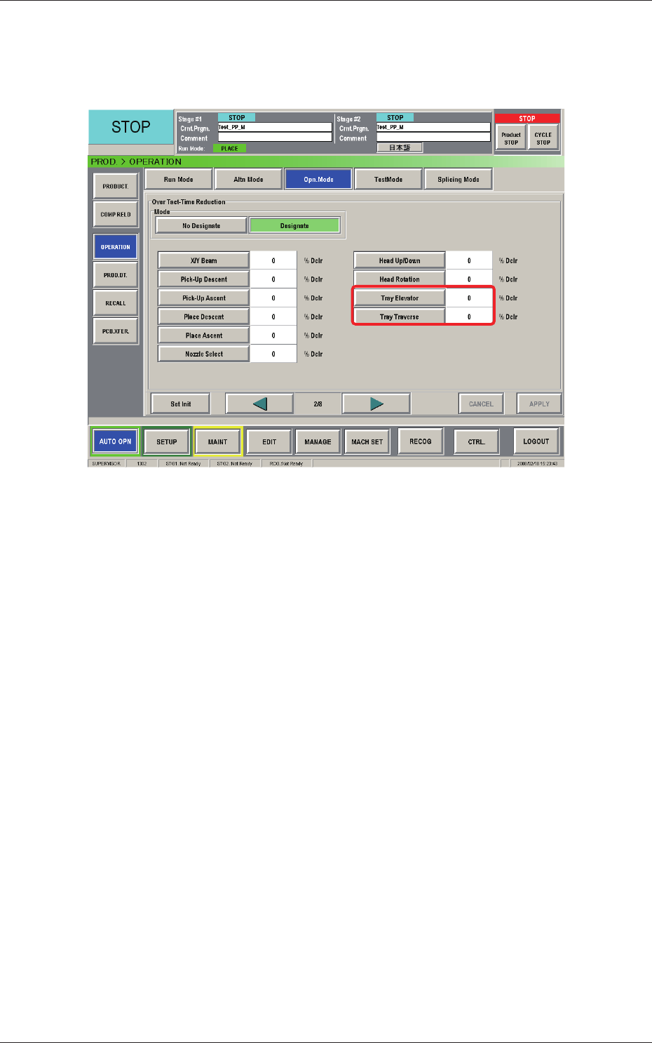 "Opn. Mode", "Test Mode", and "Splicing Mode" windows.