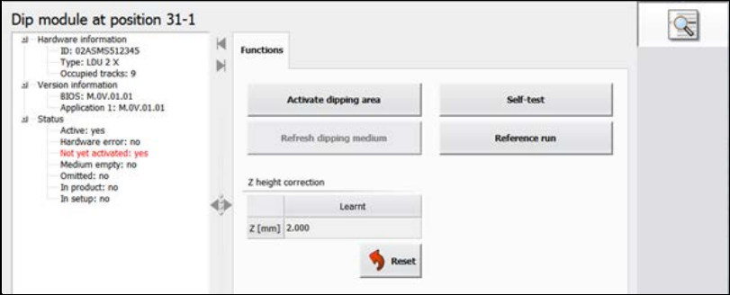 After the reference run, the operator must check that the dipping module is fully assembled, fill the