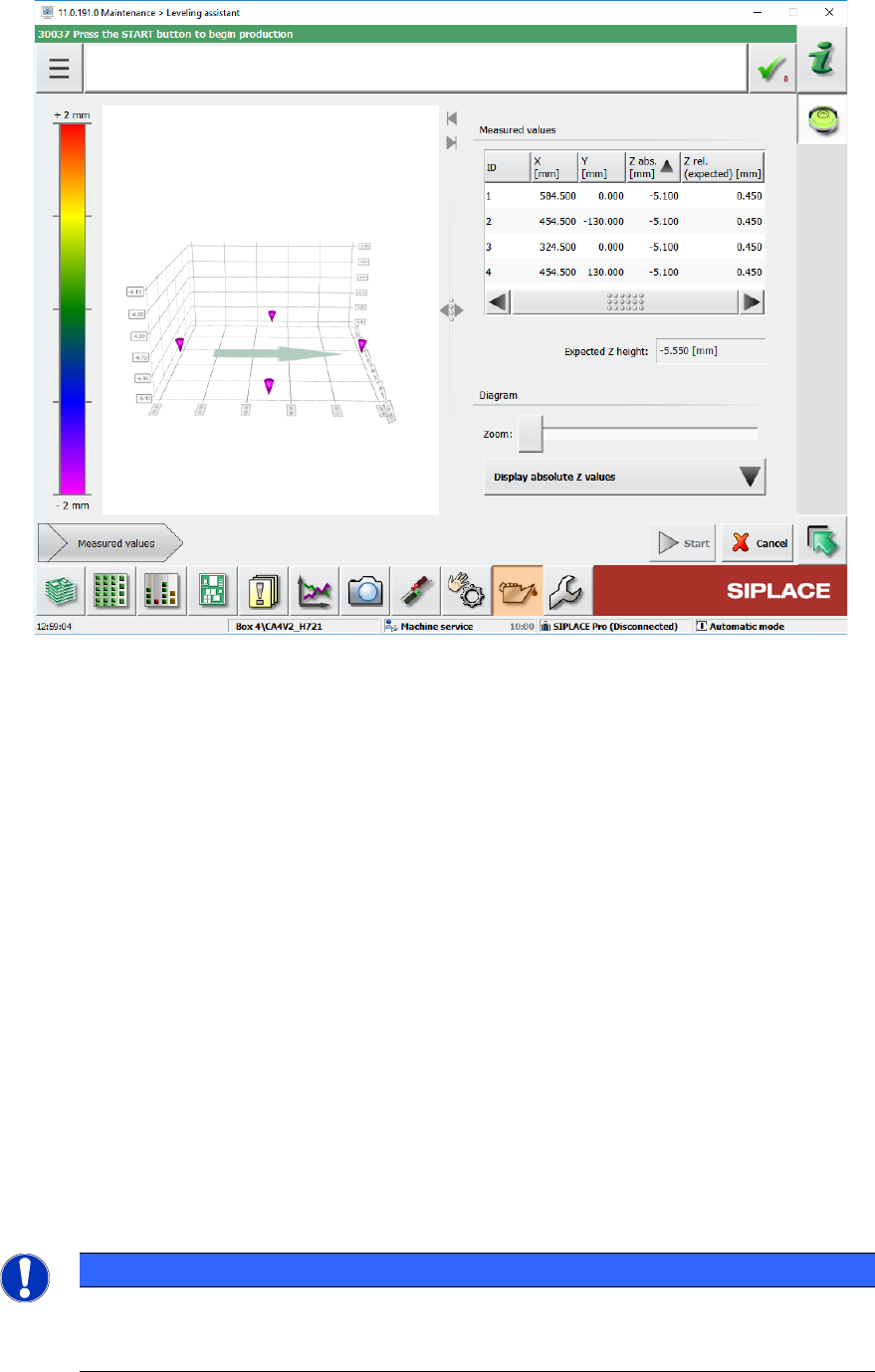 The leveling assistant helps the user to adjust the z-height of the vacuum tooling. Additionally,
