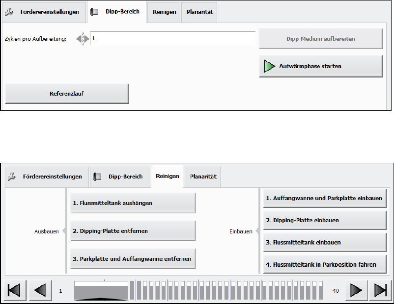 Rüstung der Förderer bedient. Folgende Aktionen können in den Registerkarten Dipp-Bereich