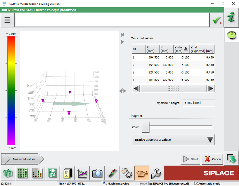 Der Assistent für Nivellierungen hilft dem Benutzer, die Z-Höhe des Vakuum-Toolings