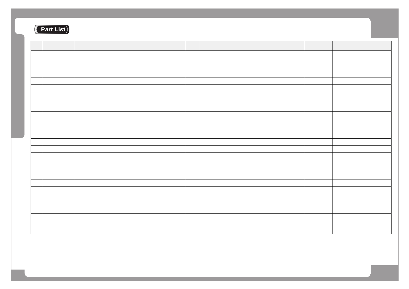 NO. PART NO. PART NAME Q'TY Old No. Supply Supply LT Reference