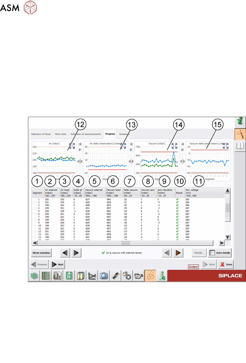 Diese Messung wird verwendet, um die Qualität des Vakuums und der Druckluft für den Bestück-