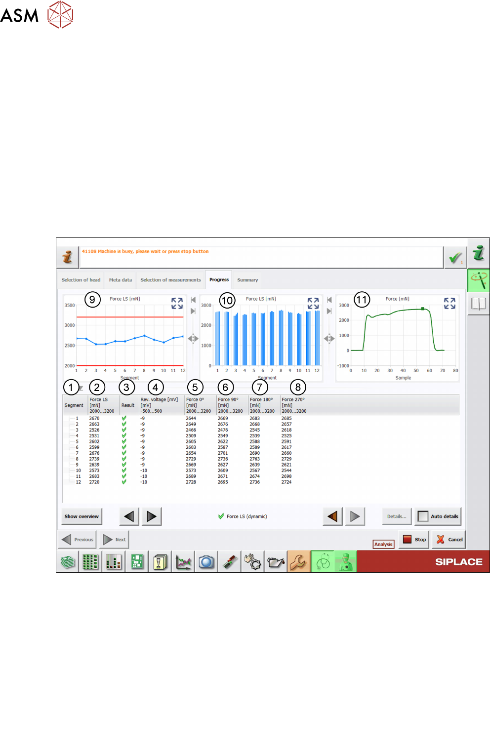 Im folgenden Bild ist ein Beispiel für die Messung "Force LS (dynamic)" gezeigt:
