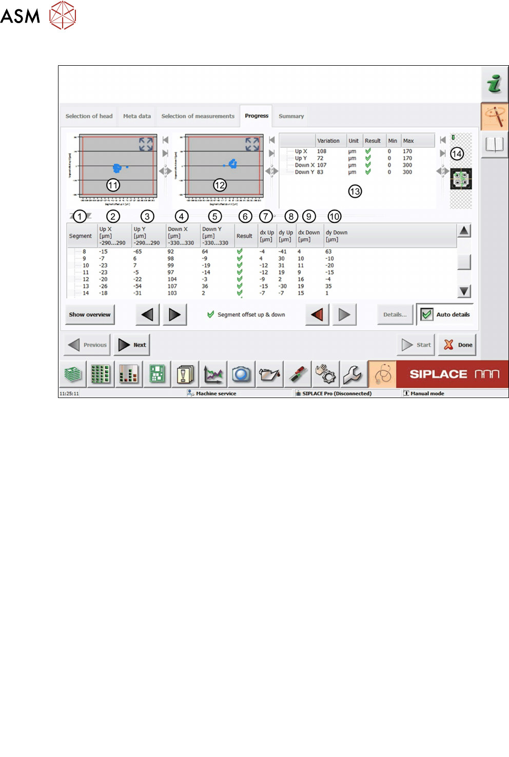 Bei der Messung "Segment offset up" wird geprüft, inwieweit sich ein Segment in der oberen Posi-