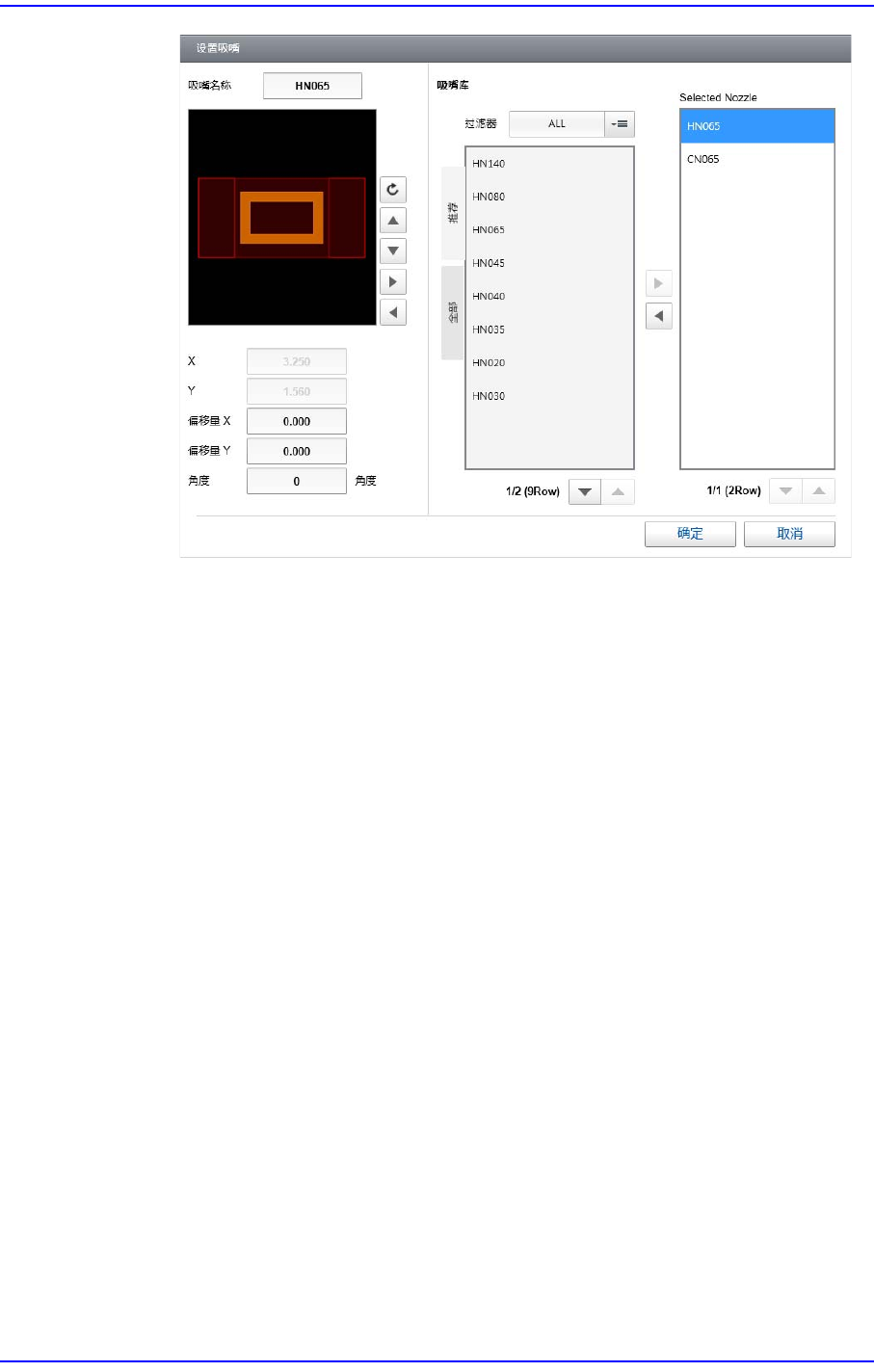 右边的<Selected Nozzle>列表框上选择的吸嘴添加到左边的