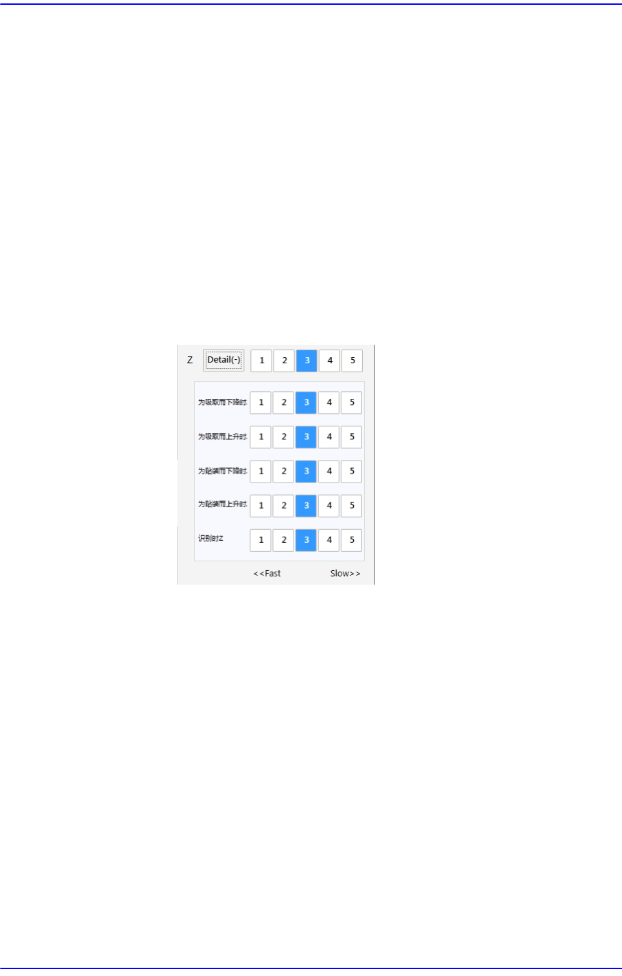 备注 可以在吸取及贴装元件时适用,它与<速度>选项卡中设定的速
