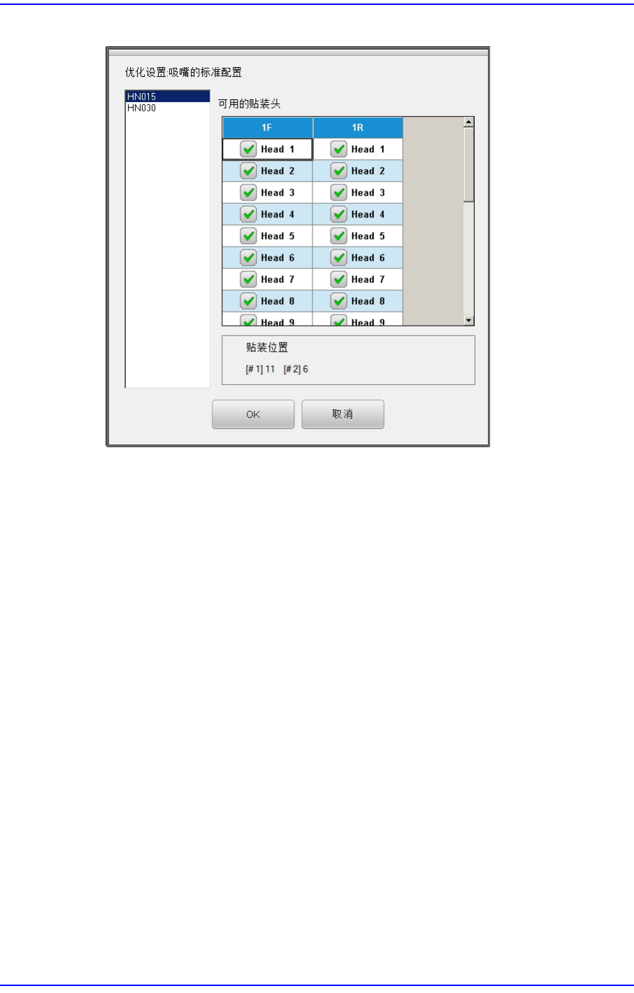 上图显示吸嘴HN015可以在头1 和头20之间的任何头上作业。