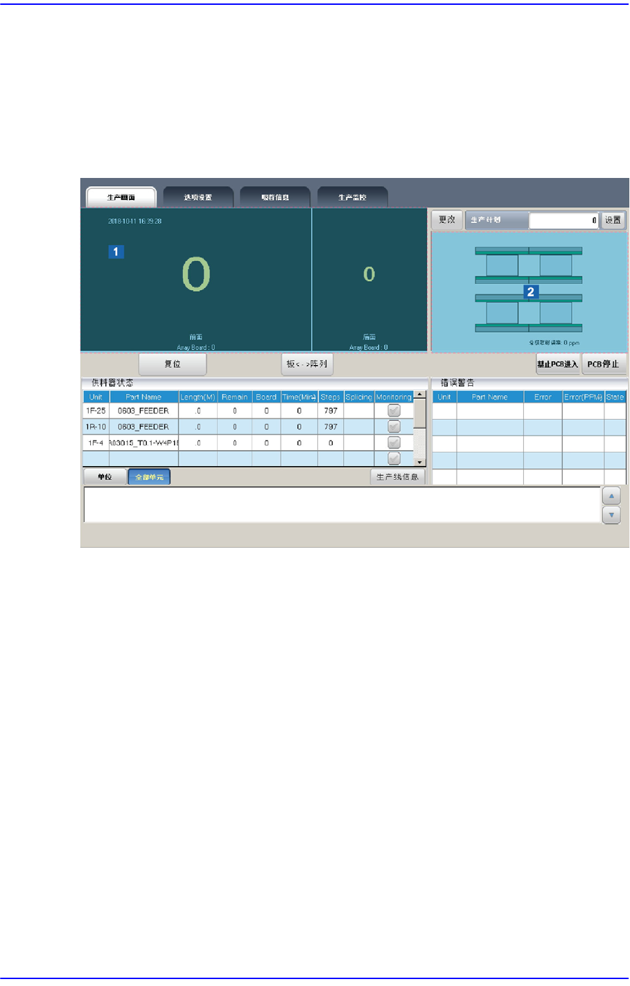 示PCB 生产数量与元件供应用喂料器的状态等生产信息