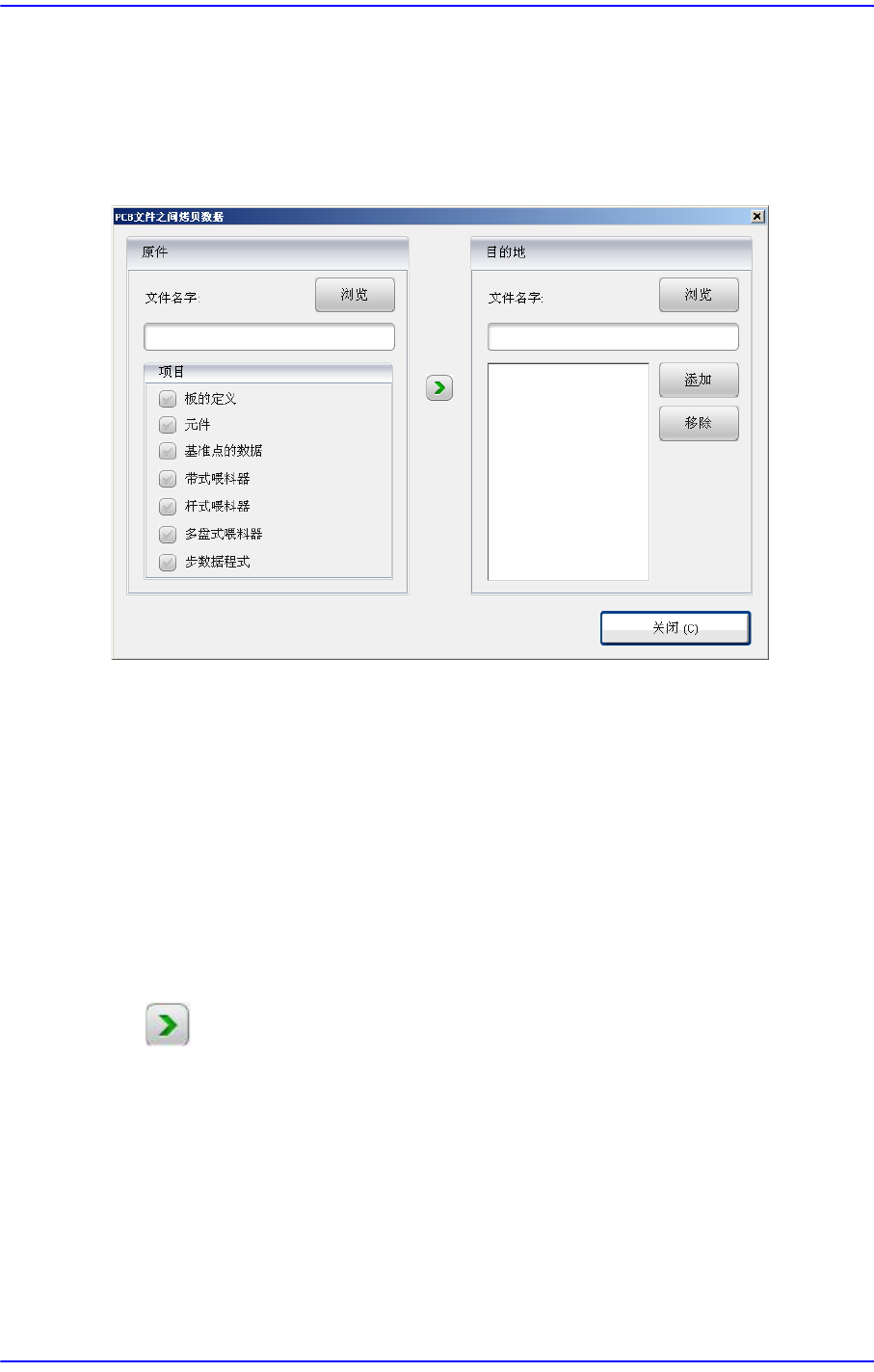 用于选择从原本PCB文件复制信息的适用目标PCB文件。