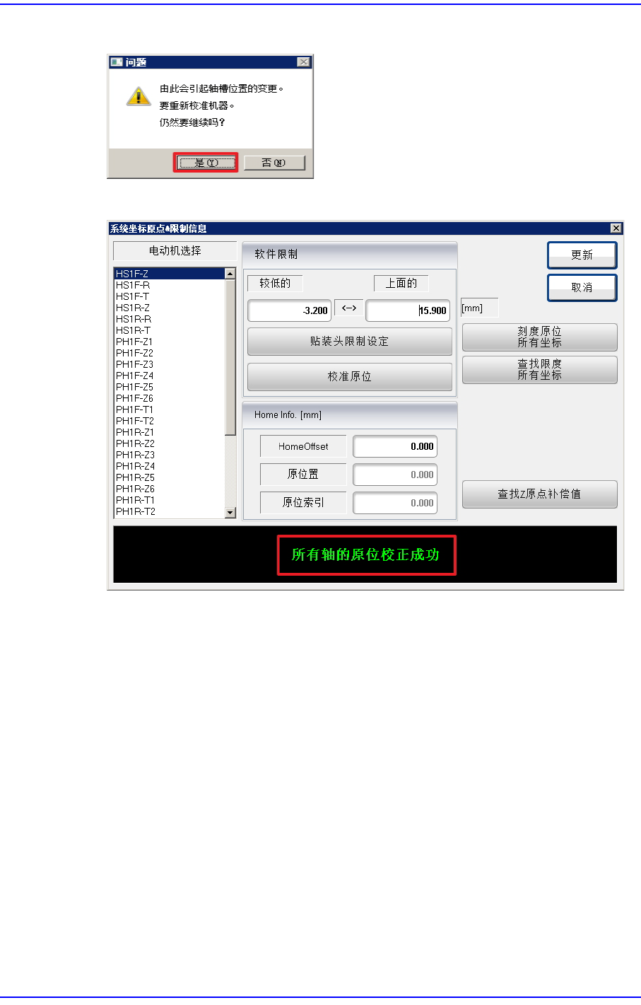 执行Axis Home Calibration方法如下。