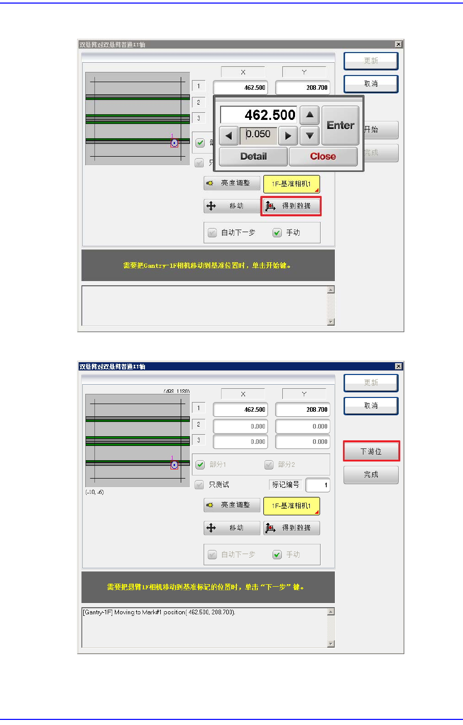 12-26 Cutting-edge Modular Mounter HM520 Administrator's Gui de 1F- 基准摄像机识别基准符号 。 5. 按下 < 下一步 > 按钮。 然后 1R- 基准摄像机会移动至所输 入的位置。