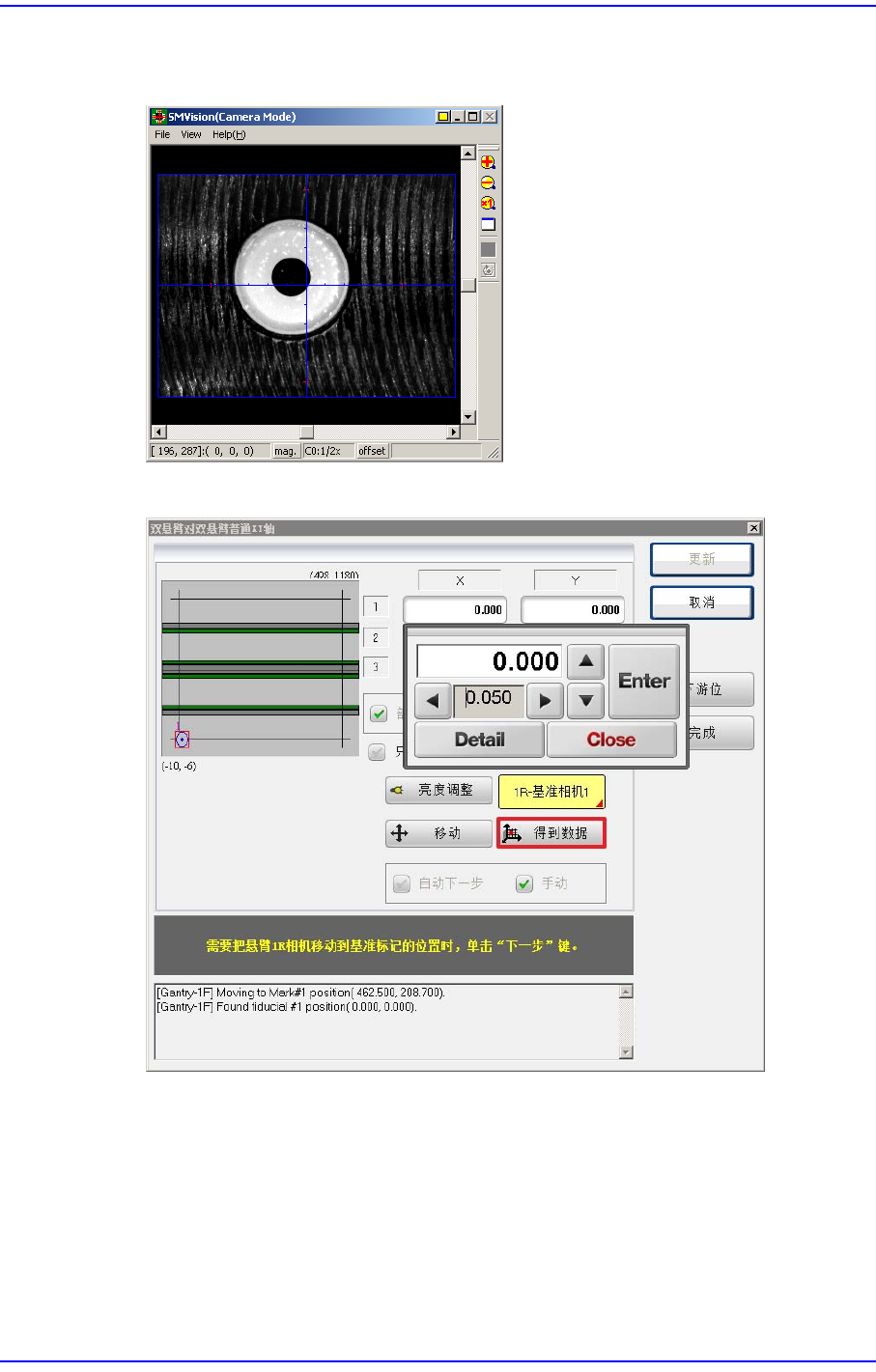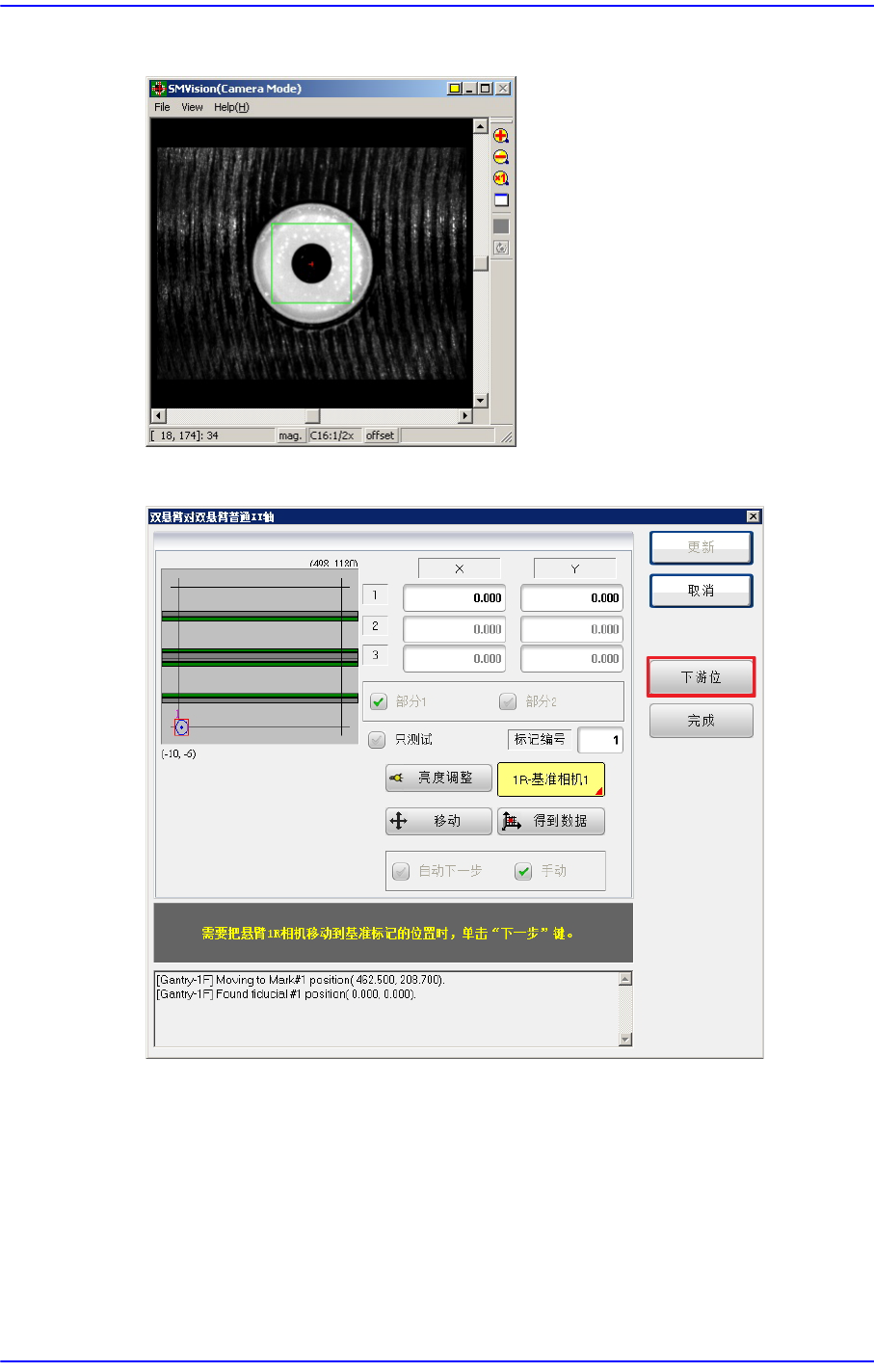 6. 为了让Vision 窗口上显示的十字线中心与传送轨道上事先设置的基准标记中心