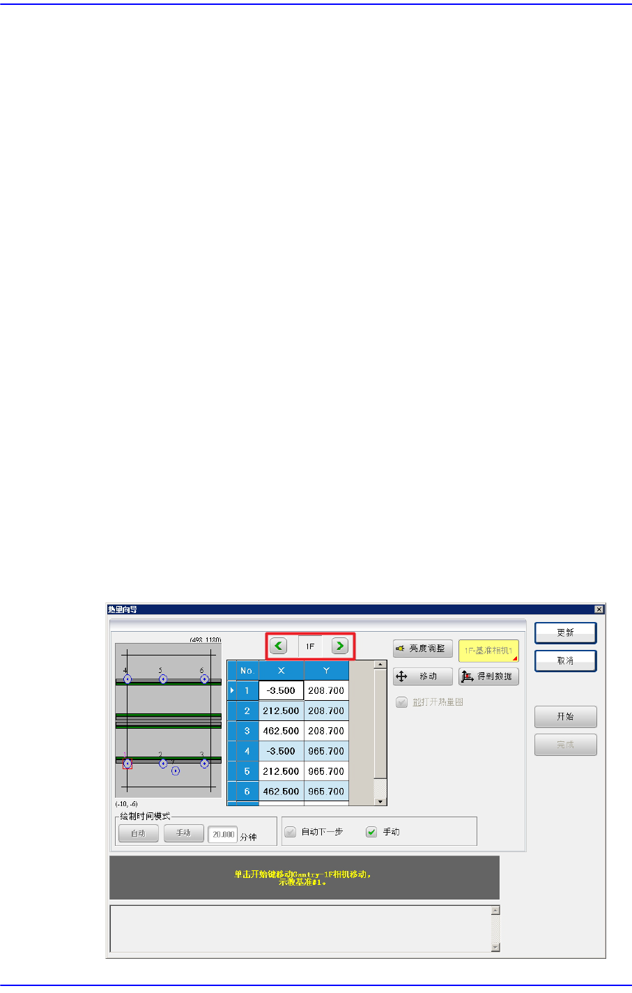 1. 在Gantry 选择箭头按钮中选择‘1F’。