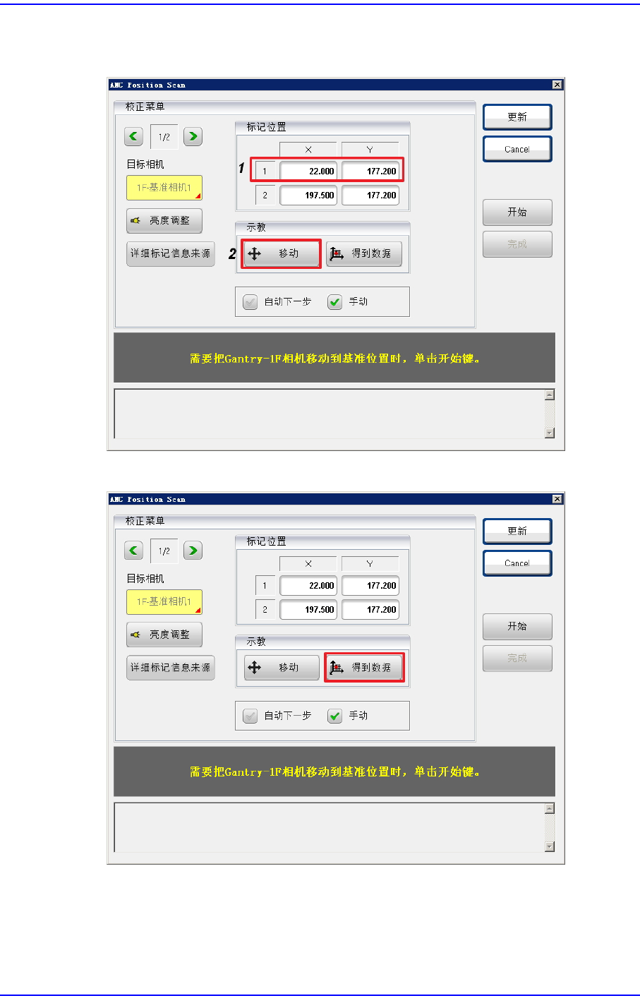 5. 在Gantry选择箭头按钮中选择 ‘2/2’后,执行2~4 号步骤。
