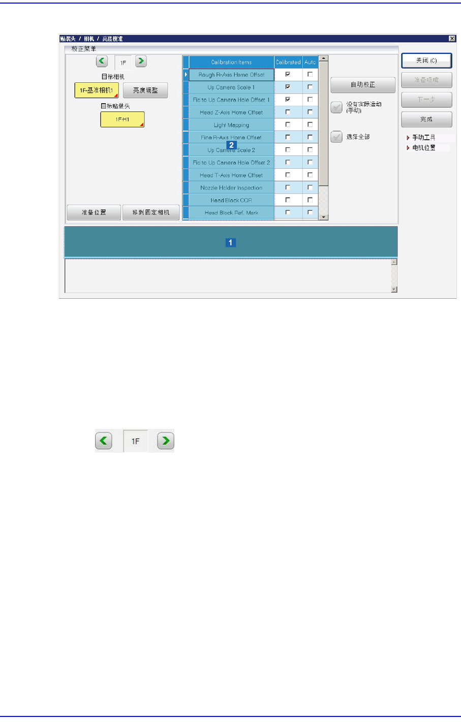 12-48 Cutting-edge Modular Mounter HM520 Administrator's Gui de <Auto> 复选框 选择需要自动执行校正作业的 Calibration Item 并按下 < 自 动校正 > 键后, 可 以按序自动校正选定栏目。 选择需要自动校 正的栏目。 但, Fid Camera Offset 在最开始的阶段需要以手动方式 进行校正。 <…