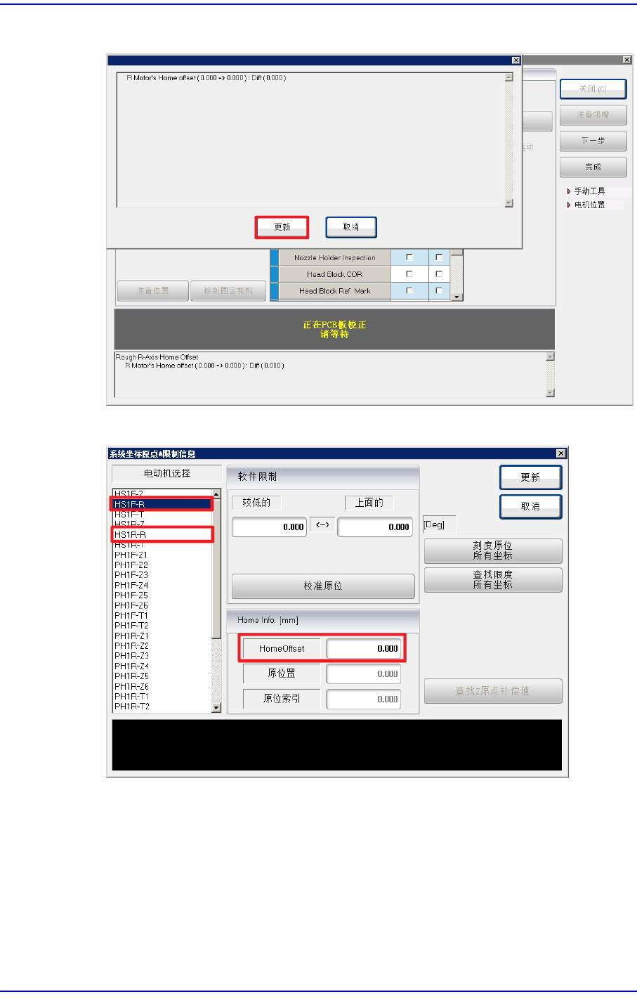 5. 按照上述方法对其余悬臂进行R轴的Home offset校准作业。