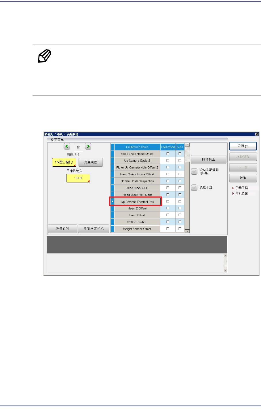 5. 按照上述方法在其余悬臂校准Up Camera Thermal Position。