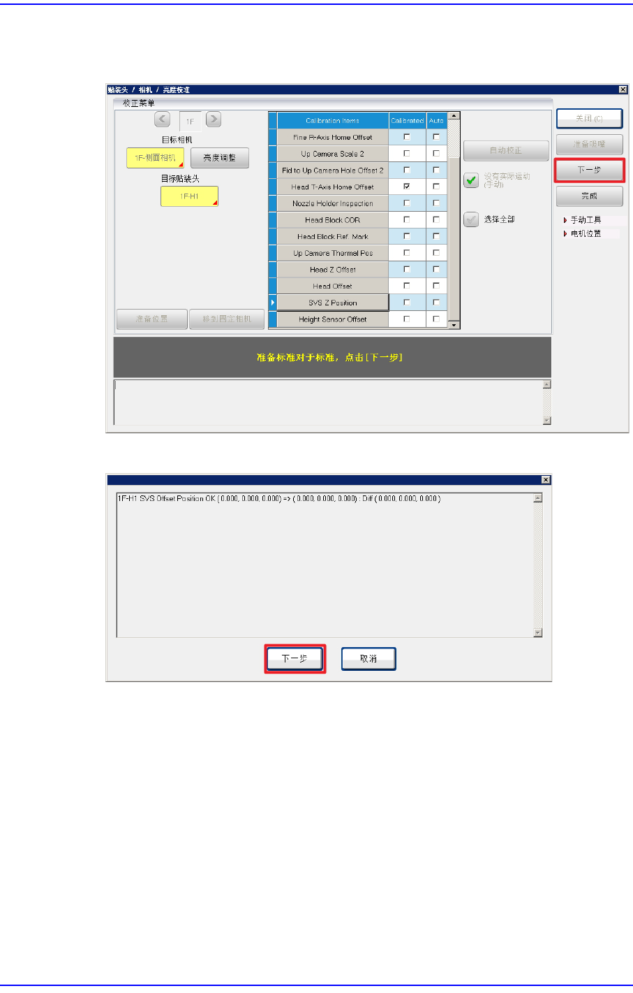 6. 1号Head 的Calibration完成后,按下< 下一步> 按钮,按2~5号步骤对其他Head