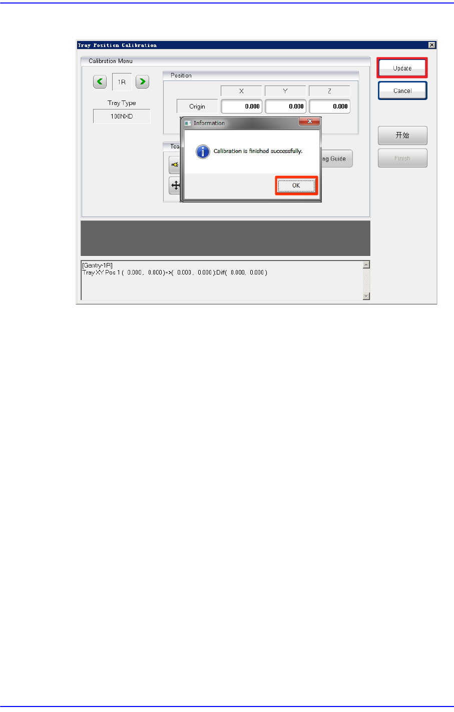 6. Calibration完成后,按下<OK>按钮,再按下< 更新> 按钮后保存结果值。