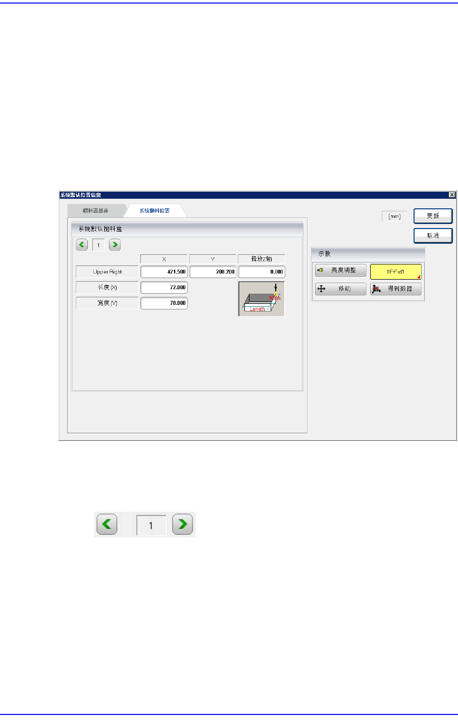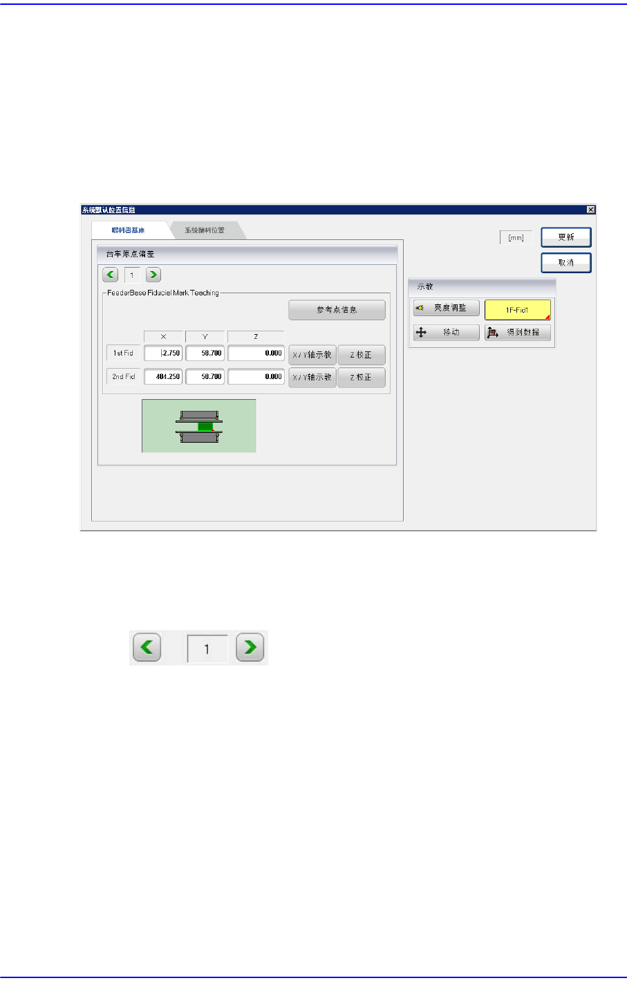 13-2 Cutting-edge Modular Mounter HM520 Administrator's Gui de 13.1. 位置 (Position) 设定设备的 Feeder Base 原点及系统回收箱的位置 。 13.1.1. 喂料器基座 设置喂料器底座的原点 ( Origin ) 。 图 13.2 “ 喂料器基座 ” TAP 对话框 < 喂料器基座 原点偏移值 > 领域 设定 Feeder …