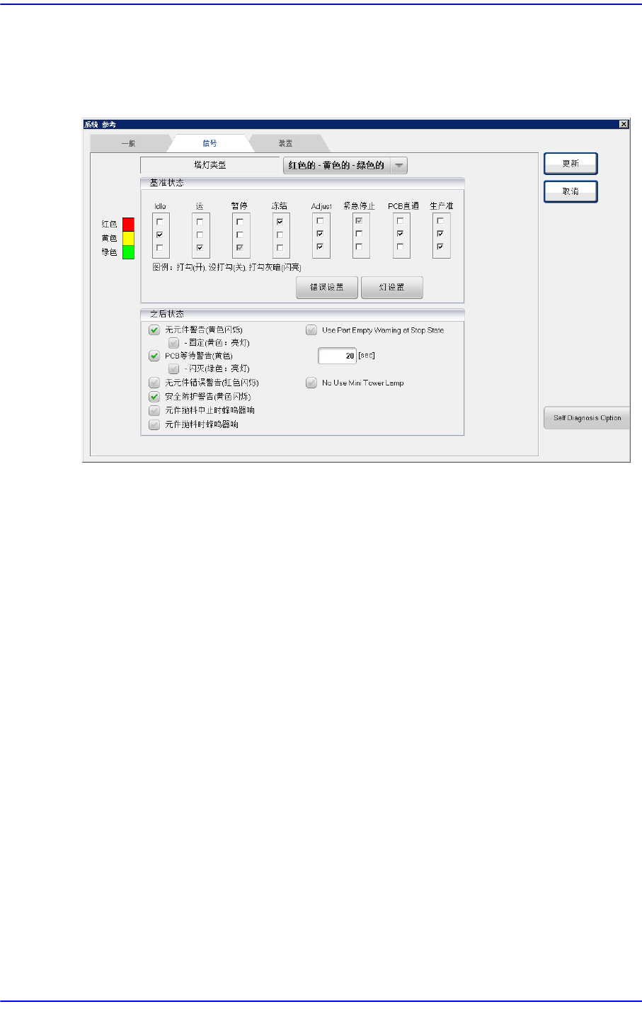 设置与设备状态对应的信号灯亮灯状态。 选择此按钮时显示如下的画面。