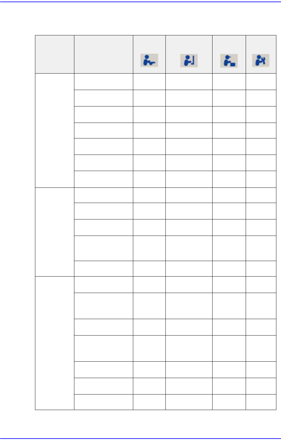 14-4 Cutting-edge Modular Mounter HM520 Administrator's Gui de 以下是列出不同用户接近 MMI 菜单权限的表 格。 ○ : 允许 , △ : 部分限制 , × : 限制接近 表 14.1 User Acce ss Limit Menu bar Sub T oolbar 操作员 程序员 管理人 维护 PCB 编辑 基板 (Board) △○ ○ ○ 元件 (Part)…