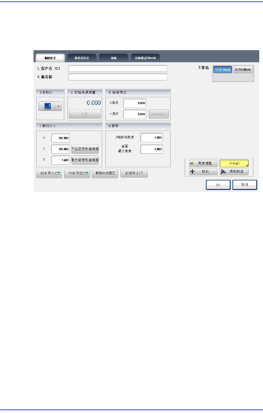 执行把PCB搬入到作业站的功能。执行此功能之前,必须在<7. 操作>的“ 固定