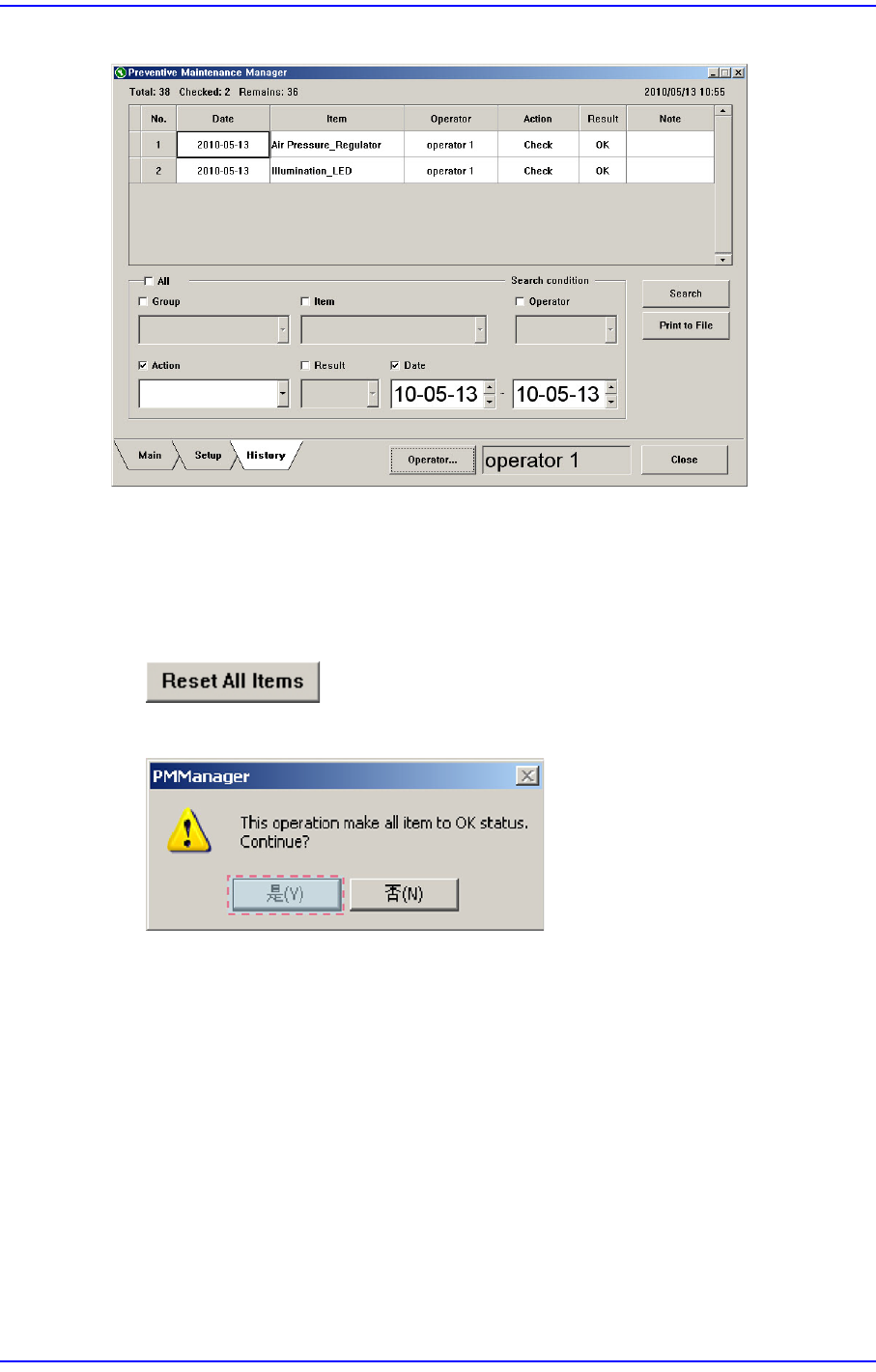 ”Check”变为”OK” 同时在<Next PM> 列中更新为PM Check的日期。