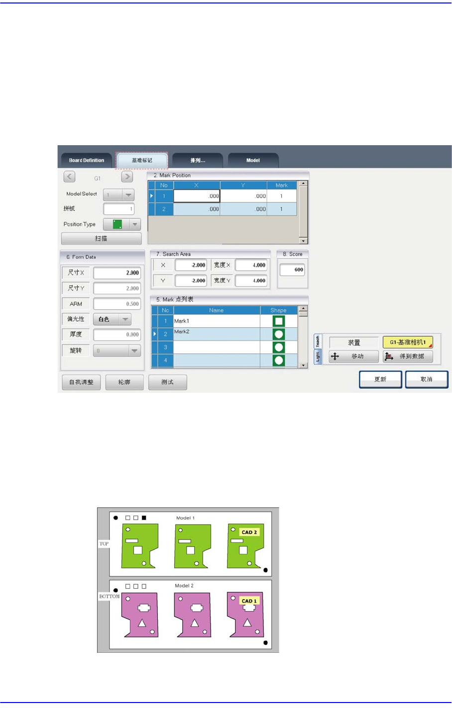 PCB上有基准点标记时,设定基准点标记的位置和标记的数据。