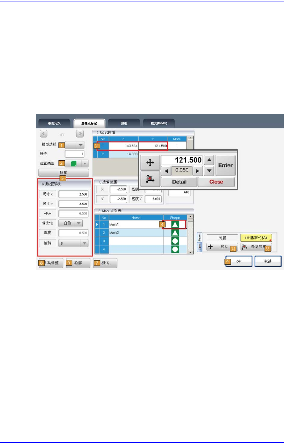 2) 在1st Zone示教Mark 1、Mark 2。
