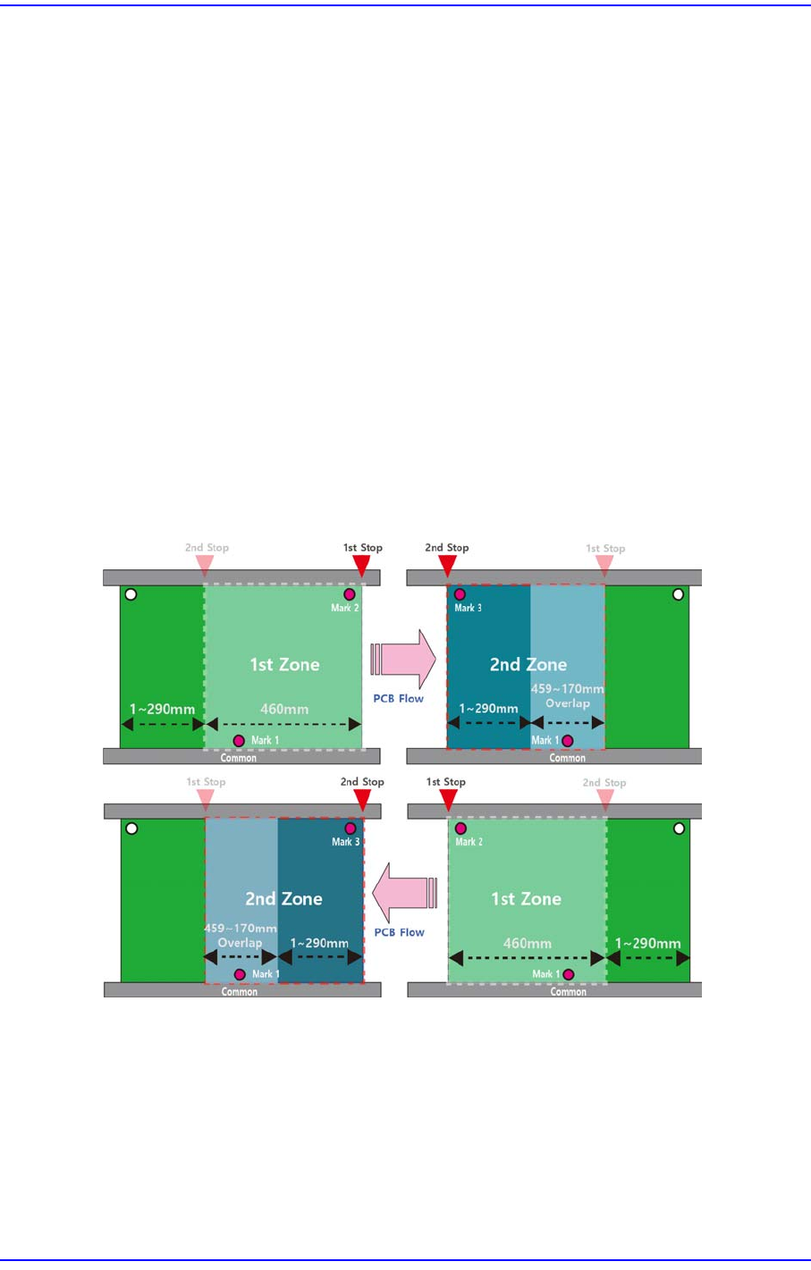对461~750 mm长的PCB 进行作业时,必须设定3~4点的基准标记,3~4点中的1点