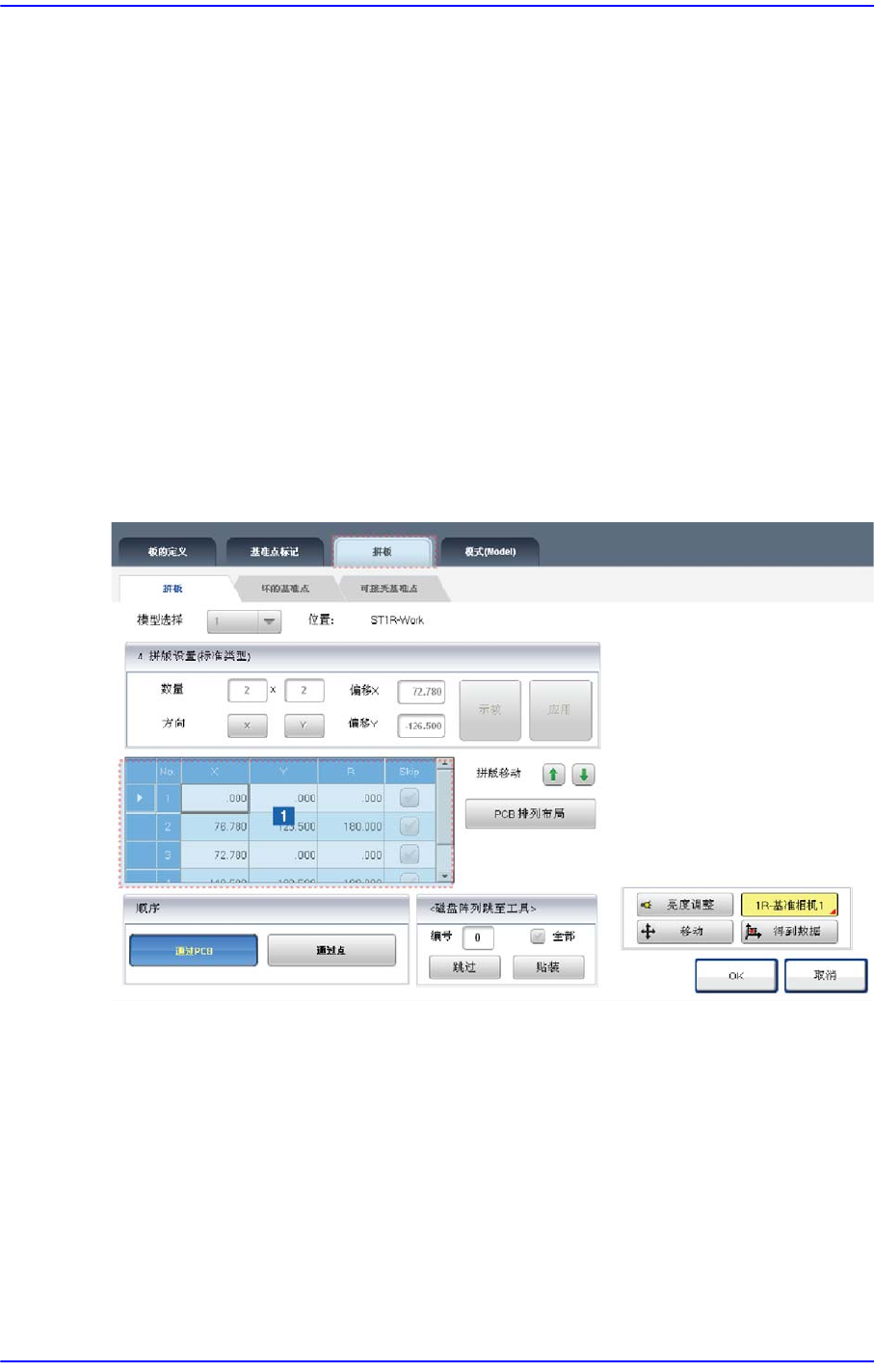 进行多片PCB的初始化。此功能在多片PCB 为常规的排列方式时,自动设定各