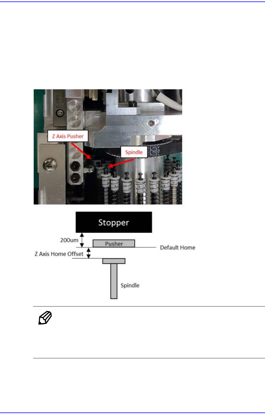 12-67 Machine Calibration 12.1.9.5. Head Z -Axis Home Offset Calibration (HSH) 这是用于测量 Z Axis Pusher 和主轴顶面之 间距离的校准, 并将其设置为 Z 轴原点 偏 移。 测量各 Spindle 的 Z Axis Pusher 与 Spindle 上方的间距并 显示结果值。 此时, 结果值包 含实际测量值的 30um Ma r gine 值。 …