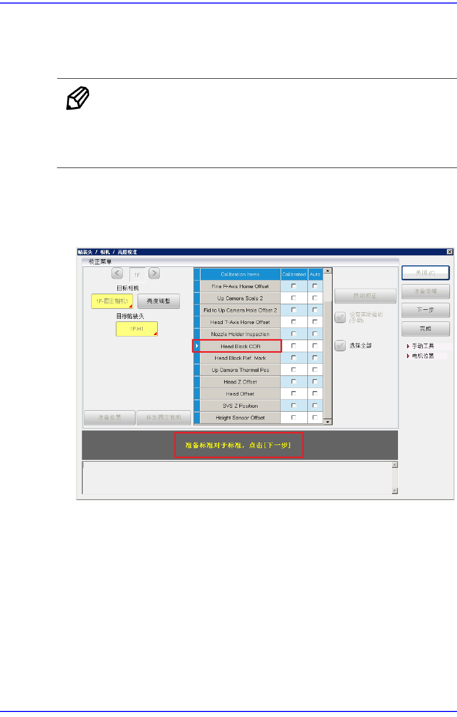 1. 按下<Head Block COR>按钮。显示“Calibration is Prepared. To Calibrate, Click