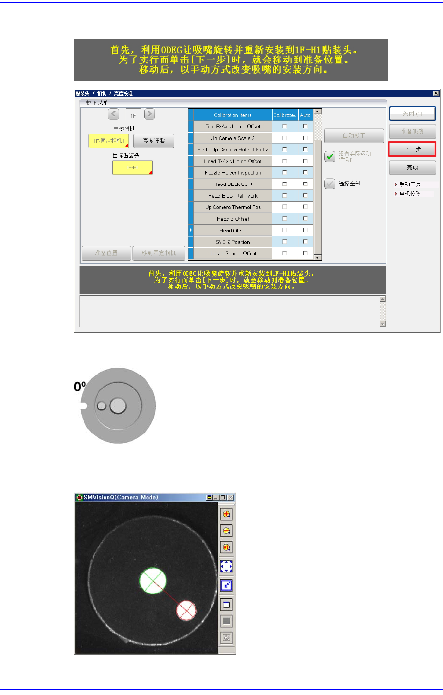 4. 按下<下一步 > 按钮时,贴装头模组朝固定相机移动并自动进行校准
