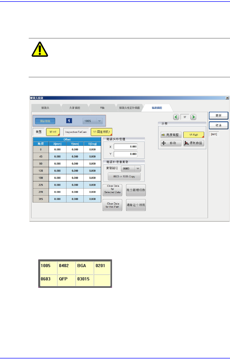 相机所测量的元件贴装偏移量加以初始化。