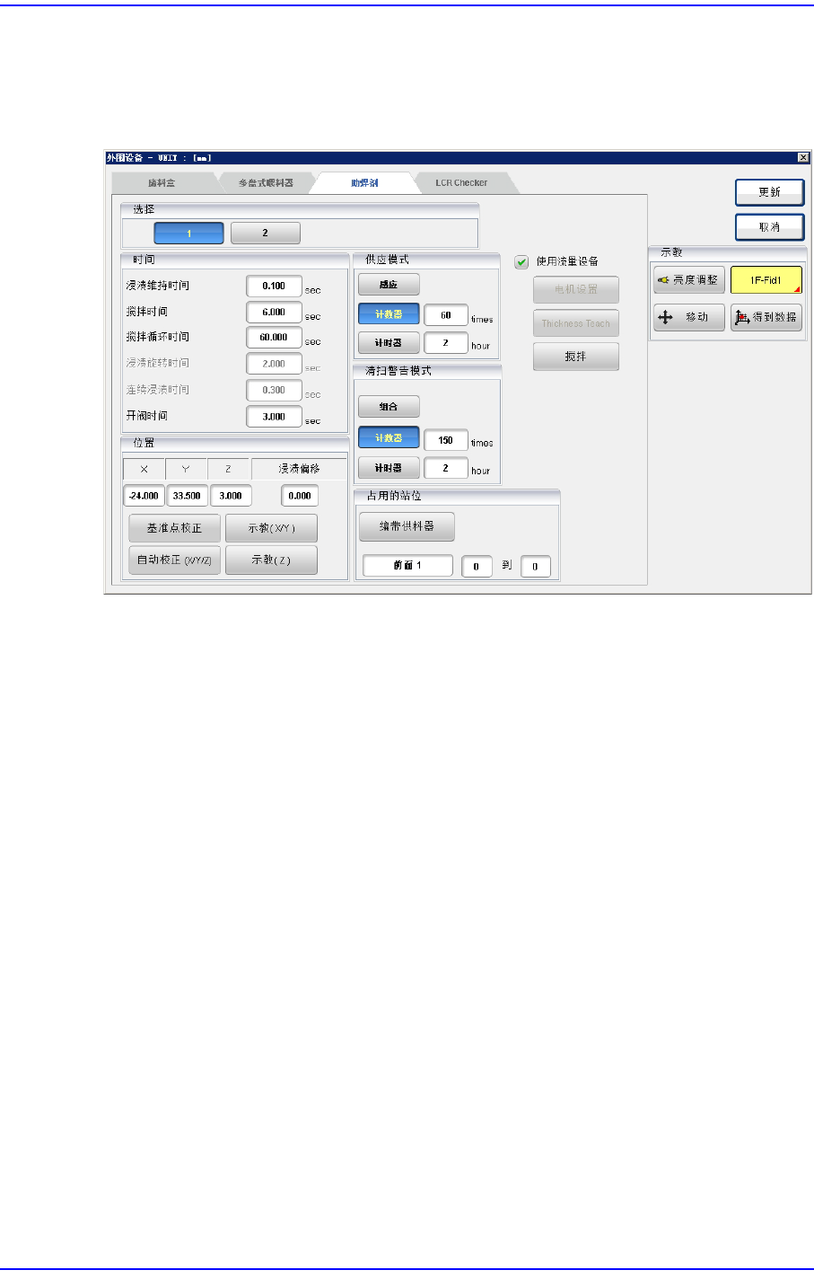 选择安装到设备上的助焊剂 (Flux)模块。最多可以安装4个助焊剂模块。