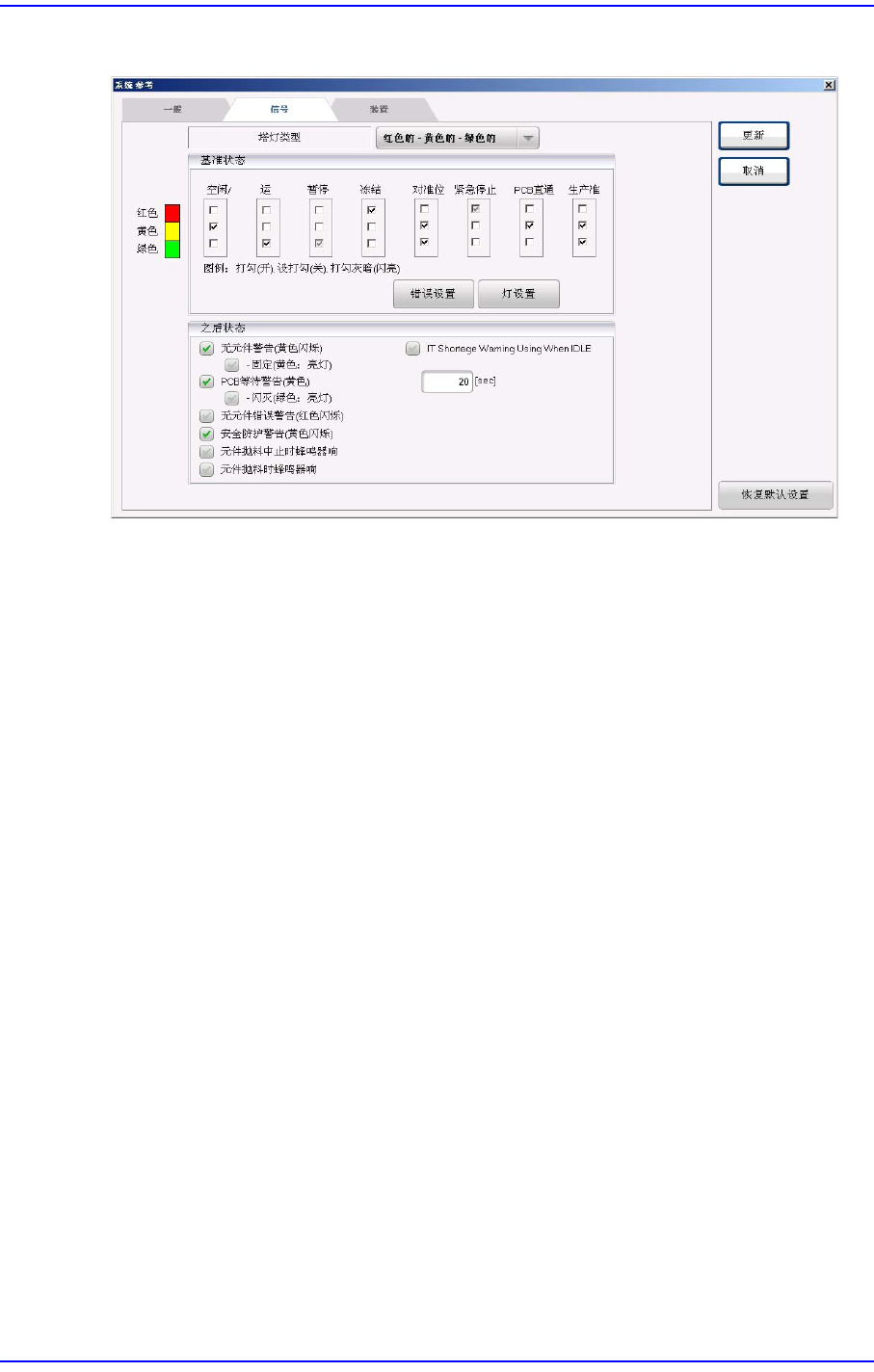 以下是信号灯Default设定相应的设备状态。