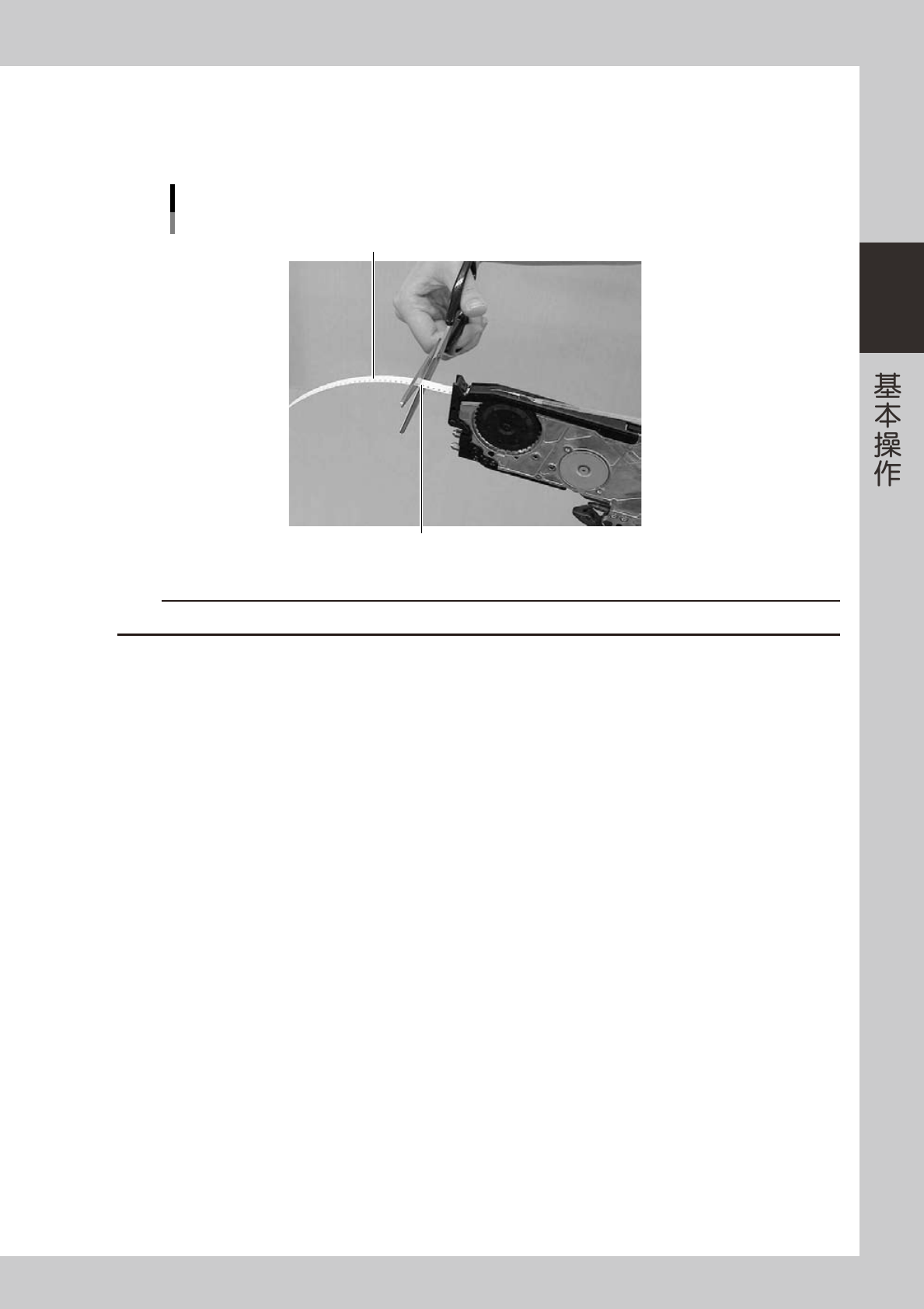 按压卷绕滚轮杆的图中所示部分,使卷绕滚轮让出间隙,将盖带插入此间隙并拉伸一定长度,放松卷绕