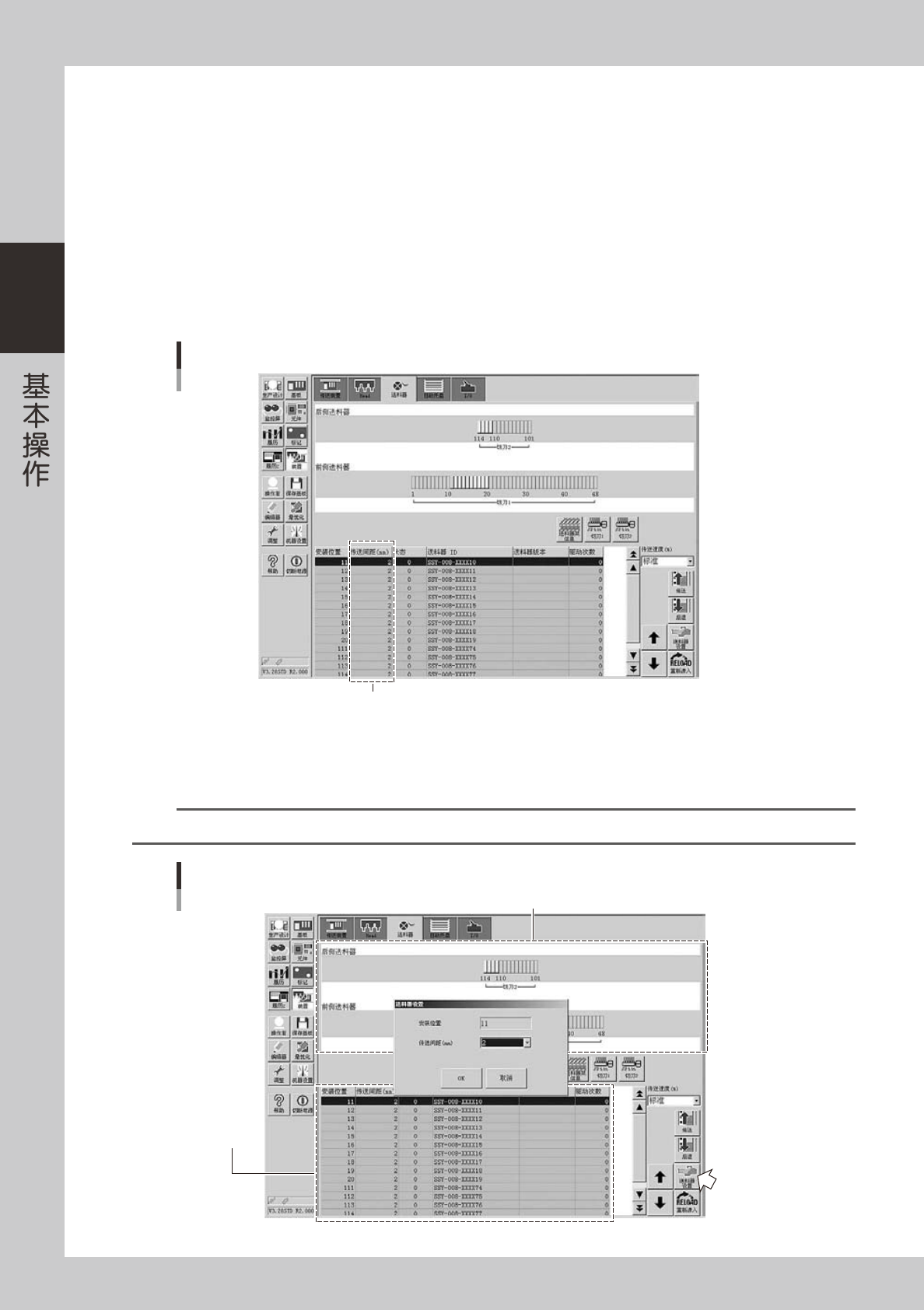 选择想要设置料带传送间距的送料器,按 [ 送料器设置 ] 按钮。