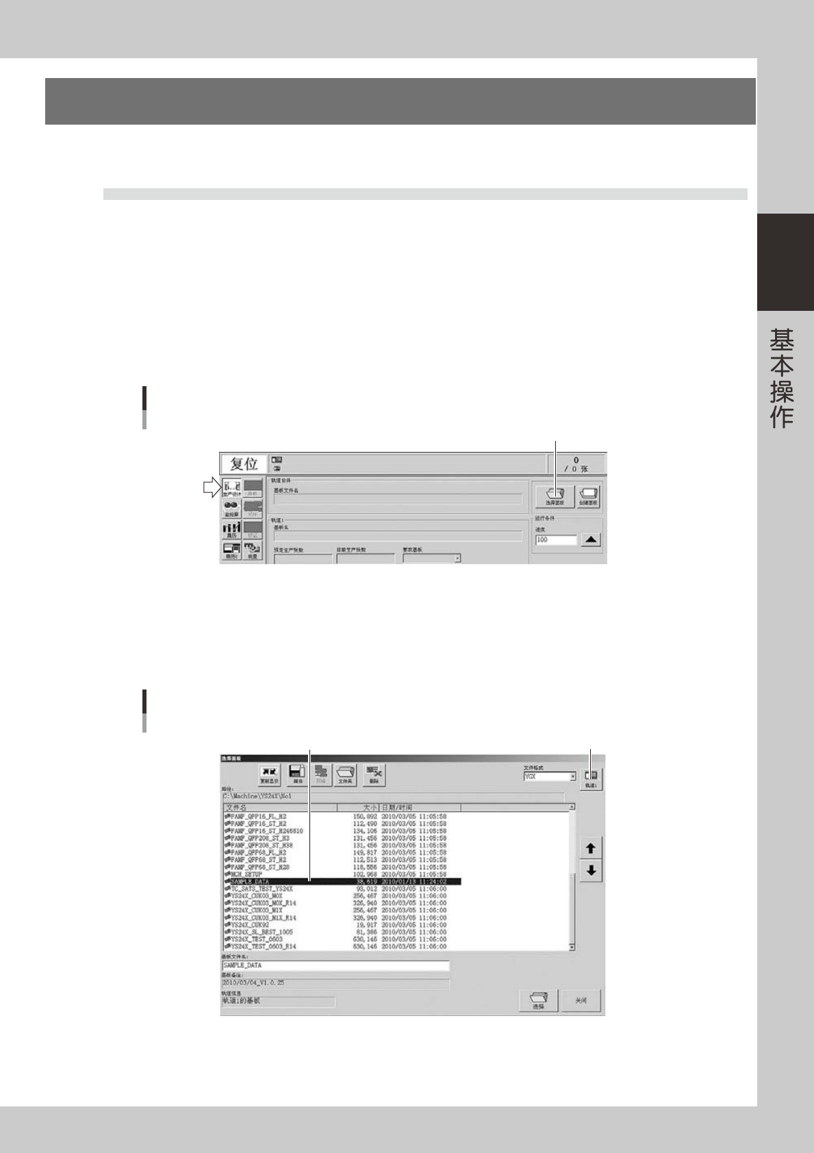 按 [ 生产设计 ] 按钮打开生产设计画面,按 [ 选择基板 ] 按钮。