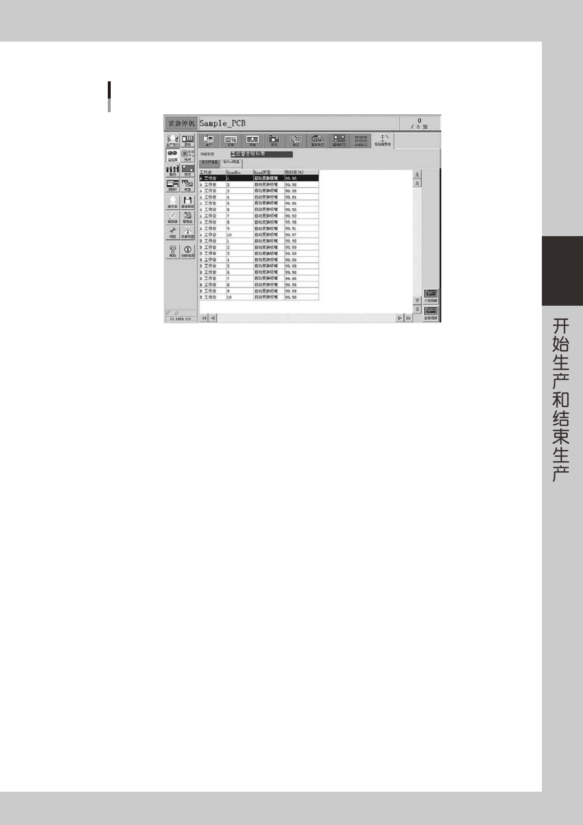 吸料率在贴装组的贴装完成后,立即更新。但是如果没有使用该元件或该贴装头,该行不会显示。运行中的吸料