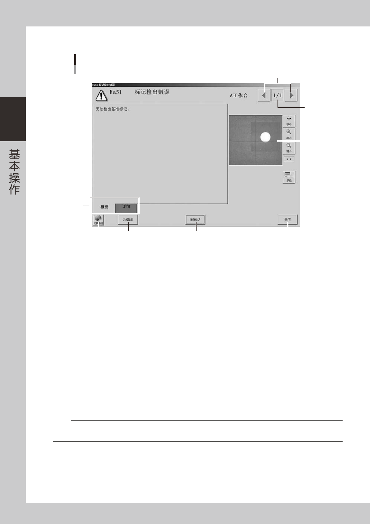 显示当前的错误和错误总数。发生多个错误时,按左右的错误切换按钮,切换至其它错误画面。