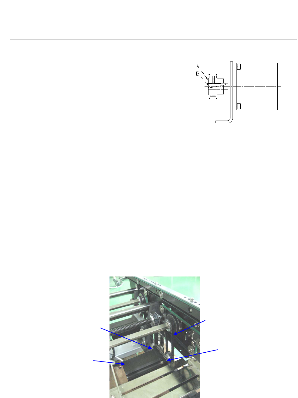 4) 马达轴和马达皮带轮③的安装位置是让皮带轮端面A和