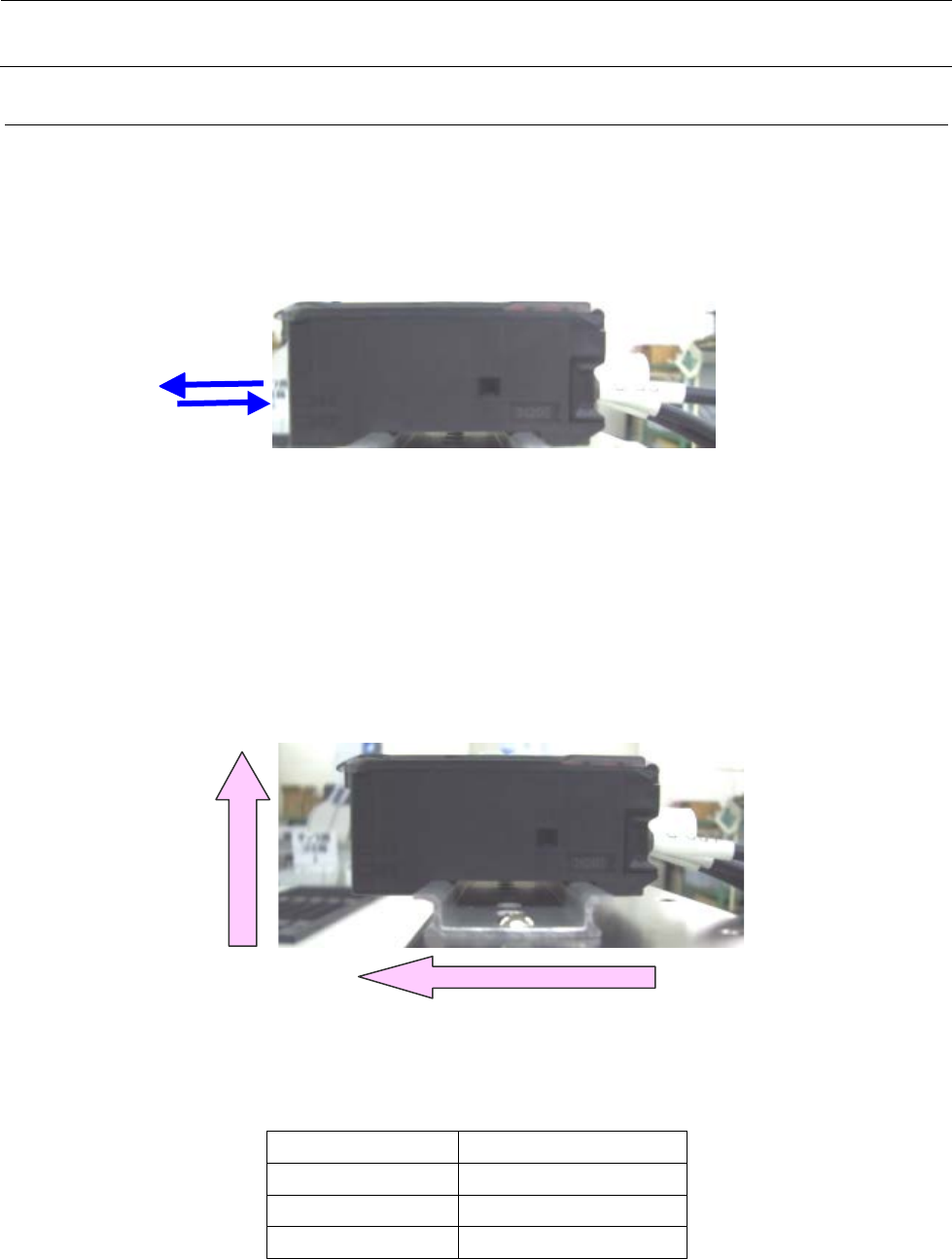 维修调整要领书 5- 7- 3 WAIT/ ST OP/C - OUT 传感器的更换 ( 弯脚固定单元选项 ) ( 1 )光纤装配到放大器中 1 ) 请抬起放大器装置上部的杠杆。 2 ) 请将光纤牢牢地插入放大器装置的深部,揿下杠杆。 注) 装配时请不要搞错投光侧和受光侧。 图 5- 7- 3- 1 光纤的放大器 ( 2 )放大器装置的拆卸和安装 1 ) 将放大器装置推入光纤插入侧。 2 ) 推入后把光纤插入侧抬起就可卸下放大器。 3 …