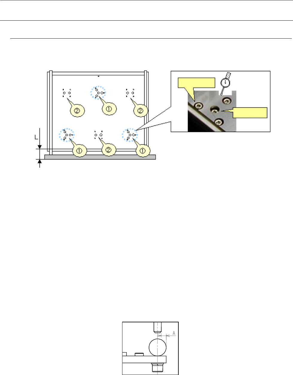 1) 将支撑台初步固定在①部分。固定的力度是即使让工作台上升滚珠螺杆也不旋转的程度。此时,