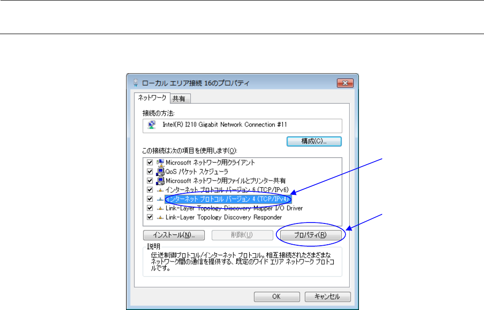 6) 请指定①[互联网协议版本 4(TCP/IPv4)],选择②[属性]。