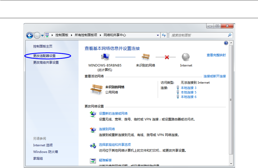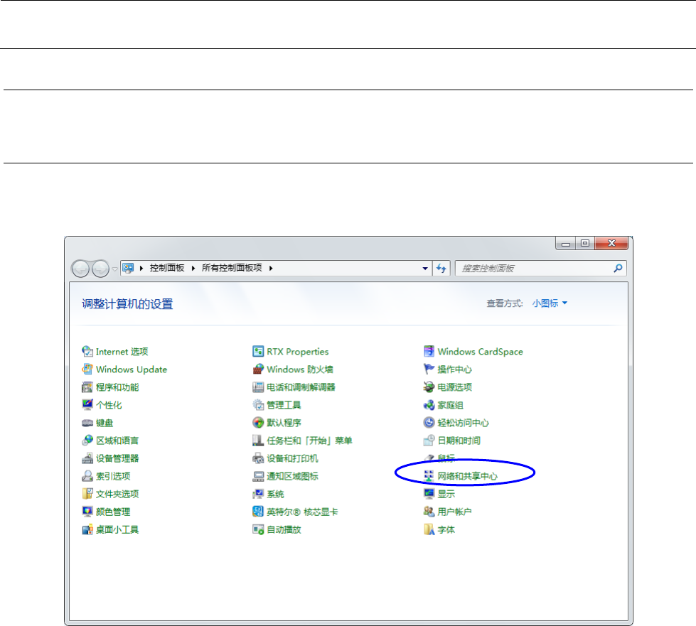 维修调整要领书 12 -2- 3 网络的设置(有 3D 传感器选项时) 为了 JM- 100 与 3D 传感器之间的通信 ,必须进行网 络设置。 12 -2-3-1 T C P/IP 的设定 1) 请选择 [ 开始 ] 按键 ,再选择 [ 控制面板 ] 。 2) 请选择 [ 网络和 共享中心 ] 。 3) 于是显示“网络和共 享中心”对话框。 请选择 [ 更改适 配器设置 ] 。 12 - 19